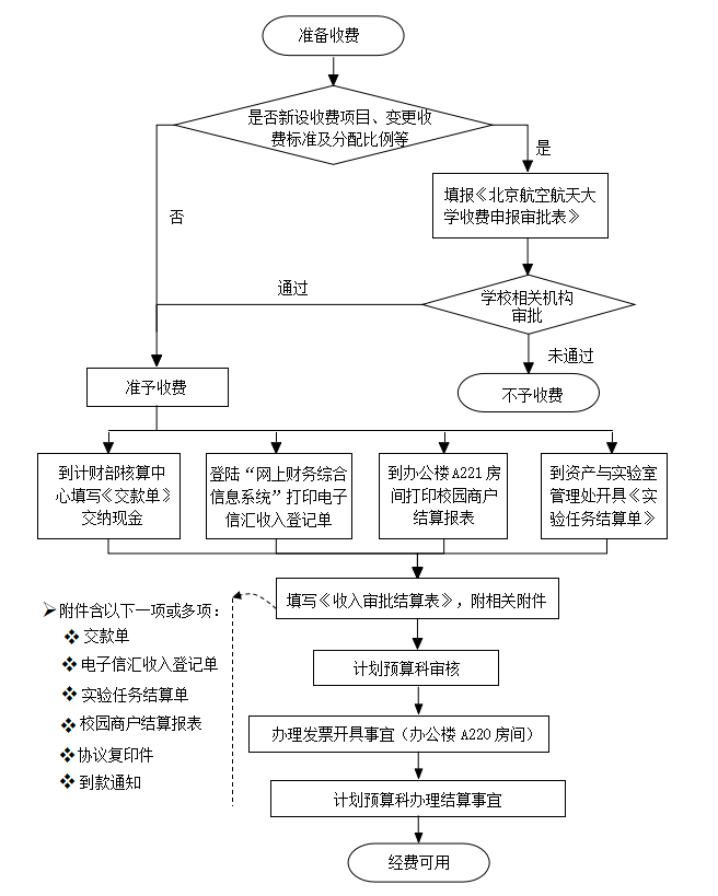 6.开立发票:经办人持审批后的《收入审批结算表》、资金到款证明及附件交计划财务部开票会计(办公楼A220房间)办理开立发票事宜;